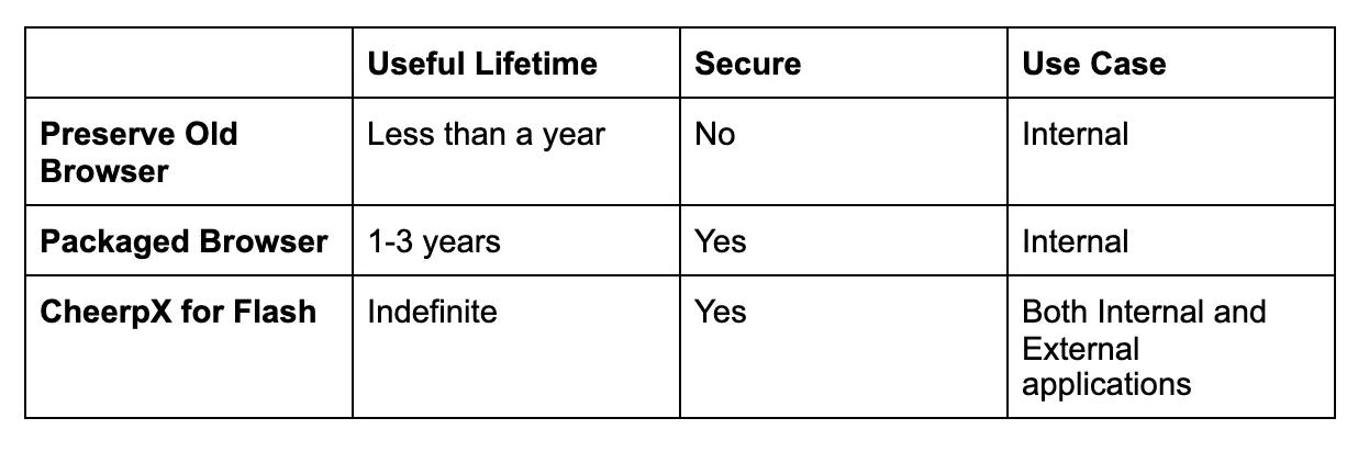 Many organisations still have a need to continue using Browser-Flash applications in 2021 and there are a number of solutions available to keep your application running.